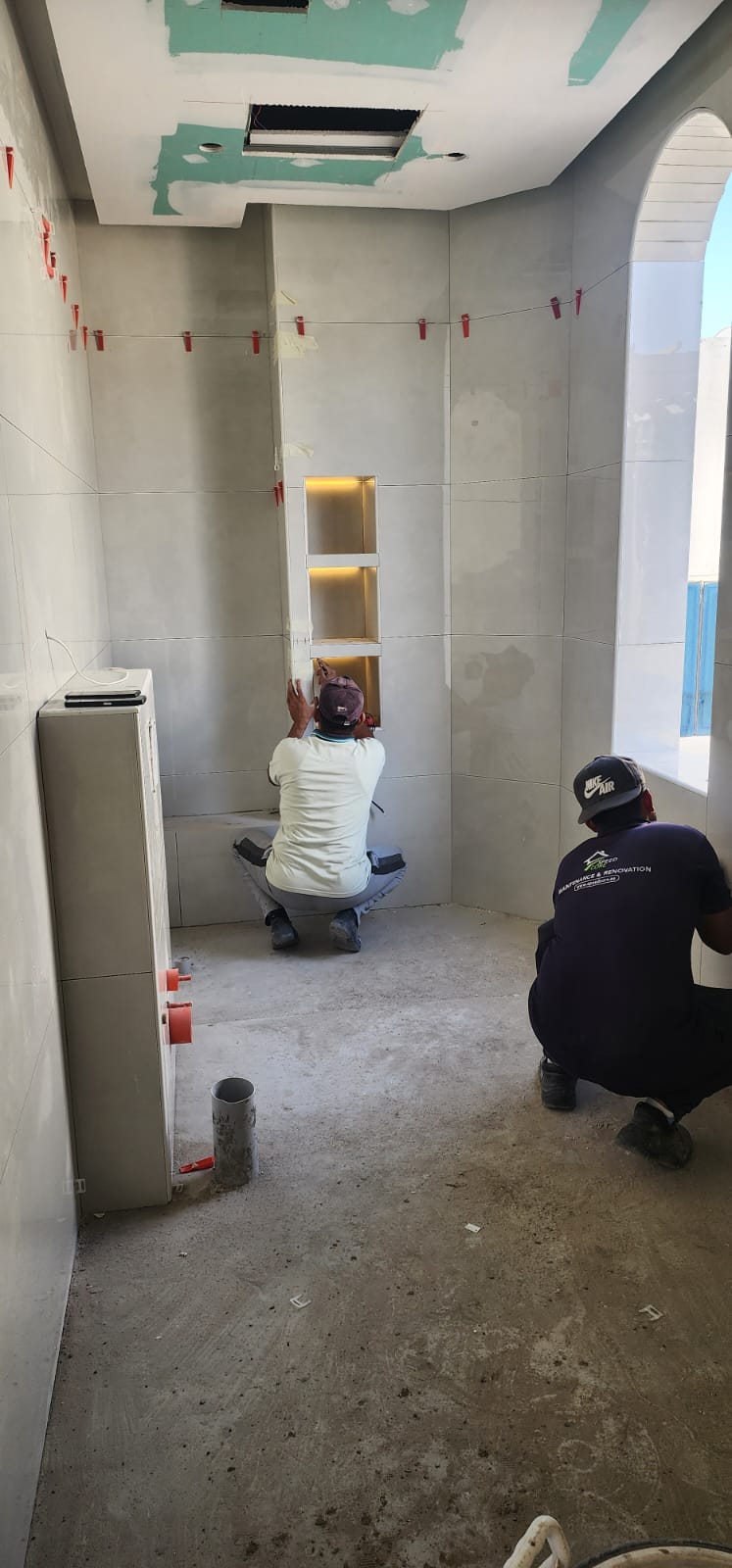 Watch the transformation with precision tiling, clean plastering, and smooth leveling done right.